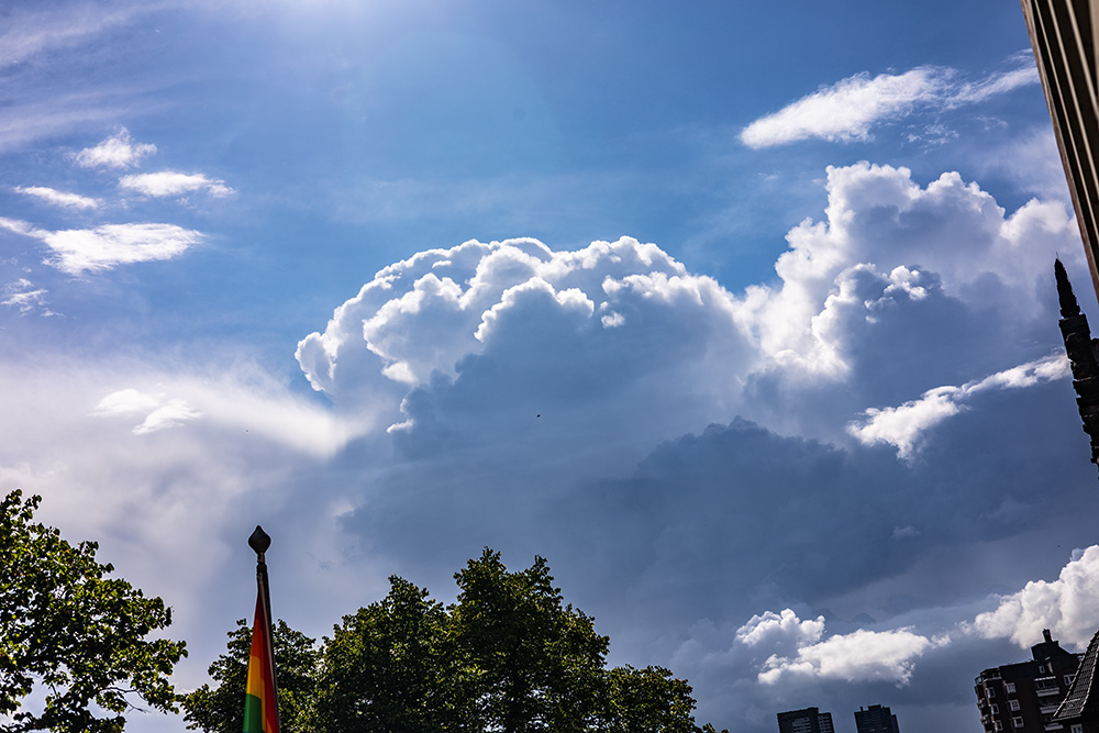 Zu Beginn noch häufig stark bewölkt durch Stratus. Dieser lockerte dann ab dem Vormittag auf und ging in Cumulus über, der im Verlauf bis zum Cumulonimbus heranwuchs