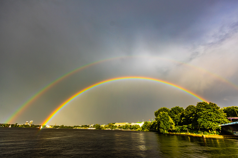 Abend zeigte sich ein intensiver doppelter Regenbogen (Bild 2). Besonders an und in den Schauern war es windig und teils recht frisch. Ansonsten war es mäßig-warm. |