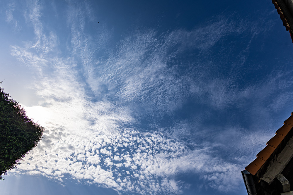 Und wieder häufig bewölkt, von eitel Sonnenschein unter Hochdruckeinfluss keine Spur, auch wenn die Sonne durch den vorhandenen Altocumulus schien (Bild). Es war weiterhin