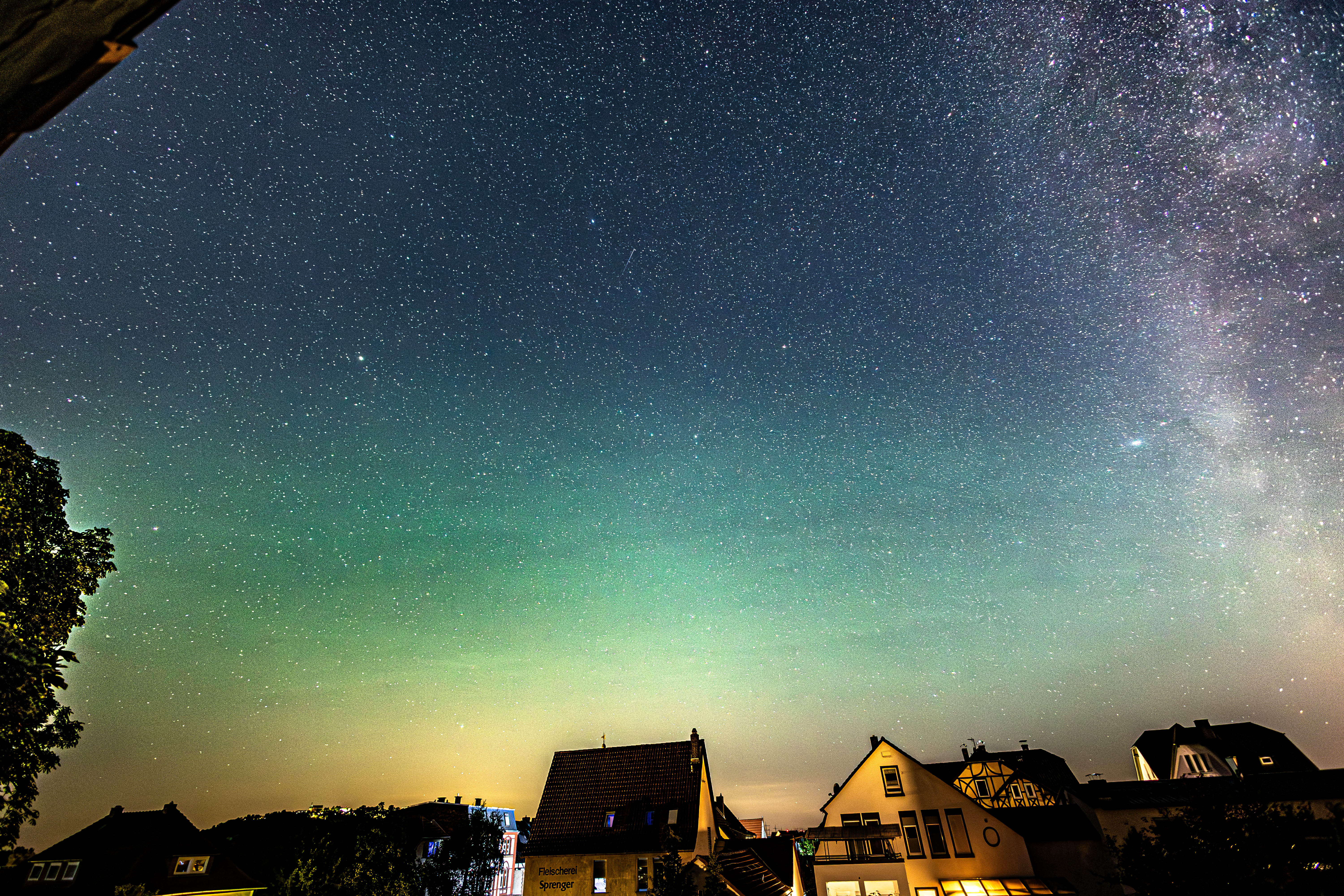 "Ex-Erin" rotiert knapp nördlich von Irland. Die Kaltfront schleift unter Wellenbildung noch über Deutschland und sorgt teilweise für ordentlich Regen. Rückseitig kommt es in nach wie vor südwestlicher Strömung, welche am Boden teils konvergent ist und in weiterhin schwüler Warmluft zu Schauern und Gewittern. Bedeckt ging es durch die Nacht, es war aber trocken. Am Morgen dann Durchzug von schauerartigem Regen. Dann war es vorerst wieder trocken und am Mittag kam sogar die Sonne vermehrt heraus. Doch dann brodelte es ordentlich (Bild 1) und mündete in einem kräftigen Schauer. Doch dieser machte die Luft noch viel unangenehmer mit Taupunkten teils um 20°C. Das blieb nicht ohne Folgen, denn am Abend ein Gewitter, wie gestern mit einer Shelfcloud (Bild 2). Doch dieses mal mit ordentlich Platzregen. Rückseitig etwas angenehmer und noch leichter Regen, bevor es dann abtrocknete und teils aufklarte. Am späten Abend konnte entferntes Wetterleuchten im Norden zusammen mit Airglow fotografiert werden (Bild 3). Die Temperatur stieg heute auf maximal 22,1°C, der Tiefstwert von genau 15°C wurde erst am Abend erreicht. Niederschlagssumme heute 22,4 mm, Wahnsinn! |