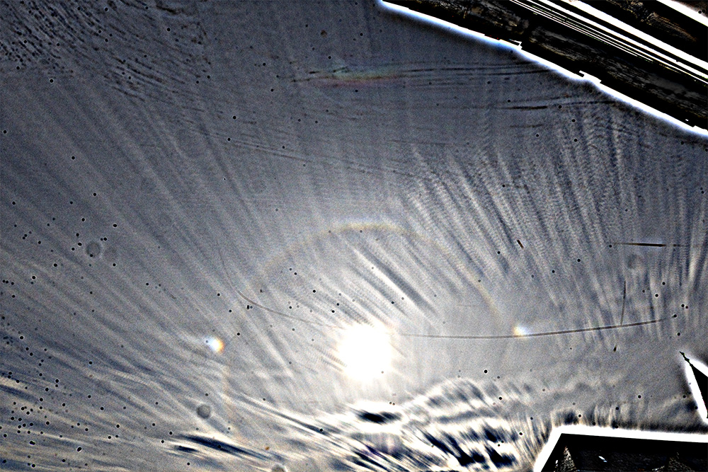 Am Nachmittag zog es sich von Westen dann wieder allmählich zu, es gab einen sehr hellen 22°-Ring, sogar der 9°-Ring war erkennbar (Bild 2). Am Abend dann Regen. |
