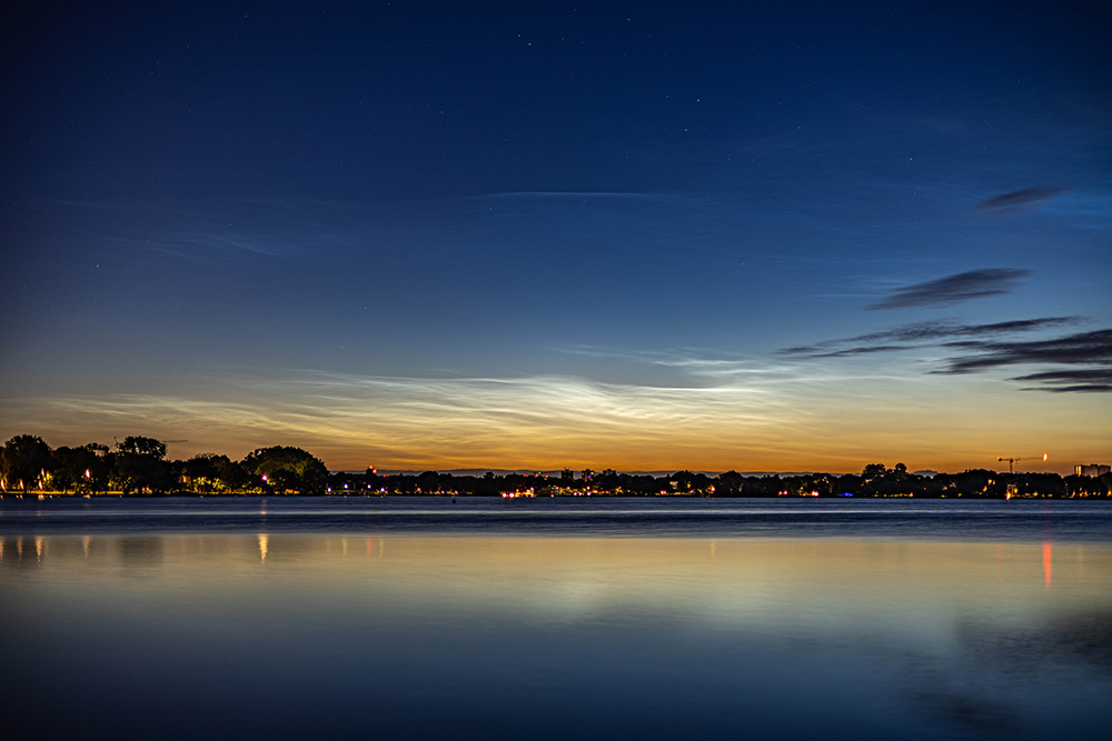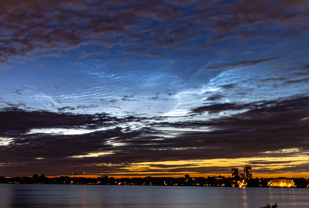 | Leuchtende Nachtwolken am 14.07. morgens | schwache NLCs in der Nacht vom 17. auf den 18.07. | schwache NLCs am 18.07. abends | gewaltiges NLC-Display am 20.07. morgens |