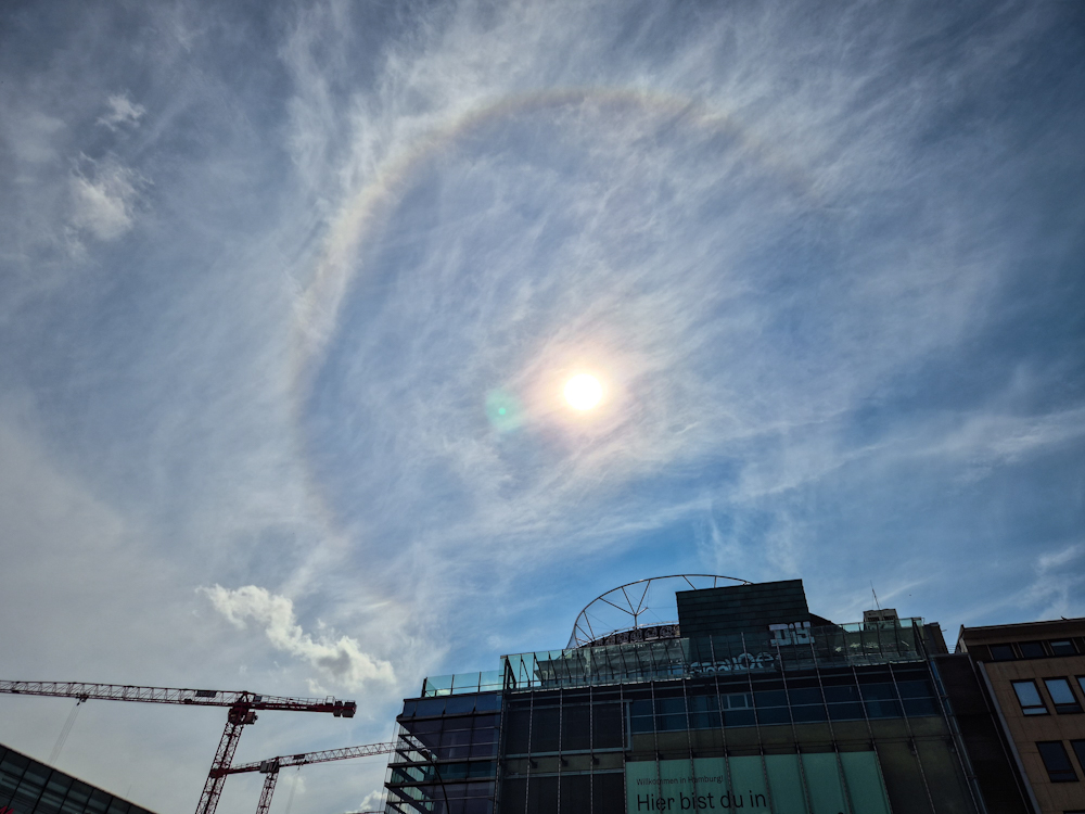 | Halophänomen am 04.07. | heller und farbiger ZZB am 04.07. | 22°-Ring am 06.07. | Fragmente von 22°-Ring und Umschriebenen Halo am 09.07. |