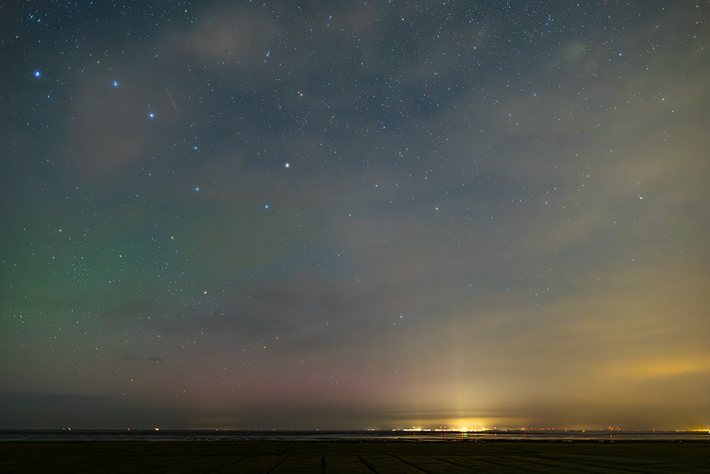 Die Nacht verlief gering bewölkt. Das von gestern ausgehende Polarlicht wurde plötzlich deutlich visuell, nach wie vor war auch Airglow vorhanden (Bild 1). Tagsüber dann bis auf ein paar Quellwolken