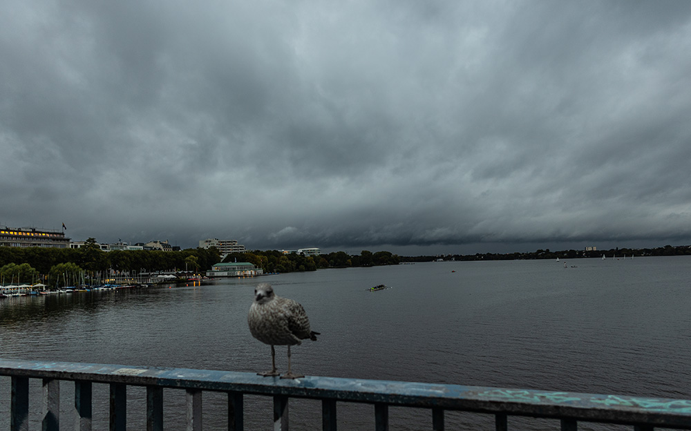 Heute eher ein veregneter Tag (Bild 1), wobei dieser eher Schauercharakter hatte. Am Abend zog dann die Front auf mit einer dunklen Wolkenwand, während eine Möwe sich kaum daran störte (Bild 2). Es