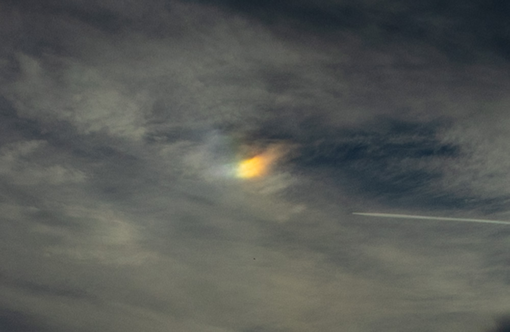 Der Tag startete wolkenlos (Bild 1), ehe von Süden Cirrus und Cirrostratus aufzogen. In den Wolken konnte am Nachmittag eine linke Nebensonne gesichtet werden (Bild 2) und am Abend gab es an der