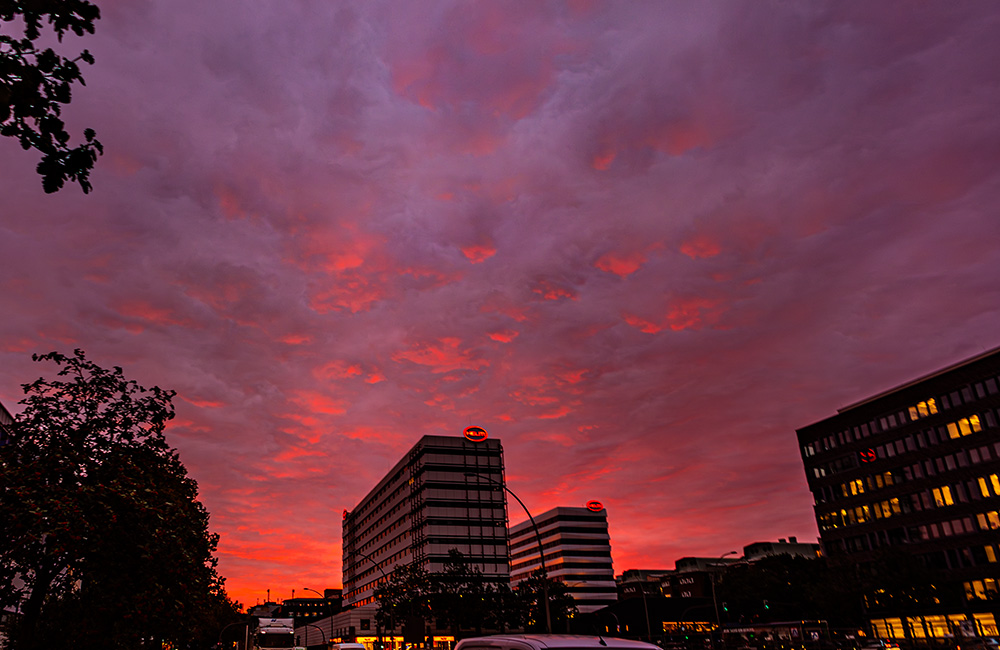 Zu Beginn des Tages noch freundlich, ehe die Front mit dichter Bewölkung und Regen eintraf. Am Abend lockerte es von Westen her wieder auf und es gab ein Abendrot (Bild). Es war merklich kühler heute. |