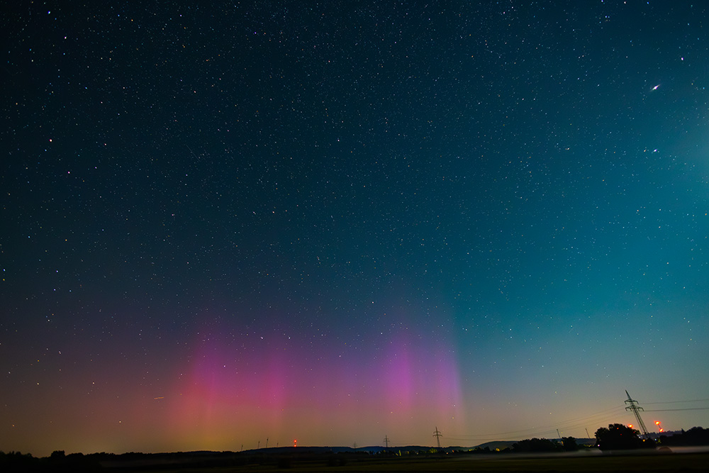 Die meisten Polarlichter in unseren Breiten sind übrigens rot. Das liegt daran, dass wir von hier aus auf die Polarlichter über Skandinavien schauen. Das nicht so hochreichende grüne Polarlicht liegt