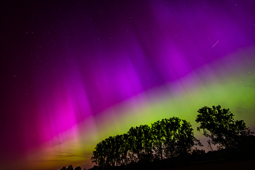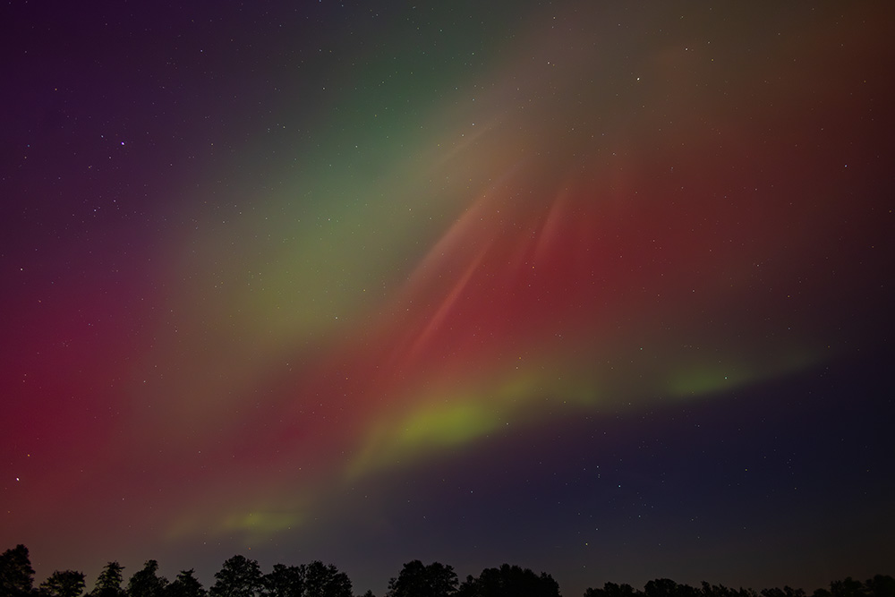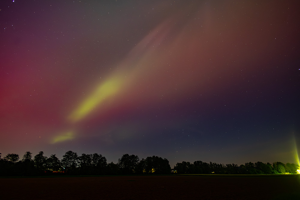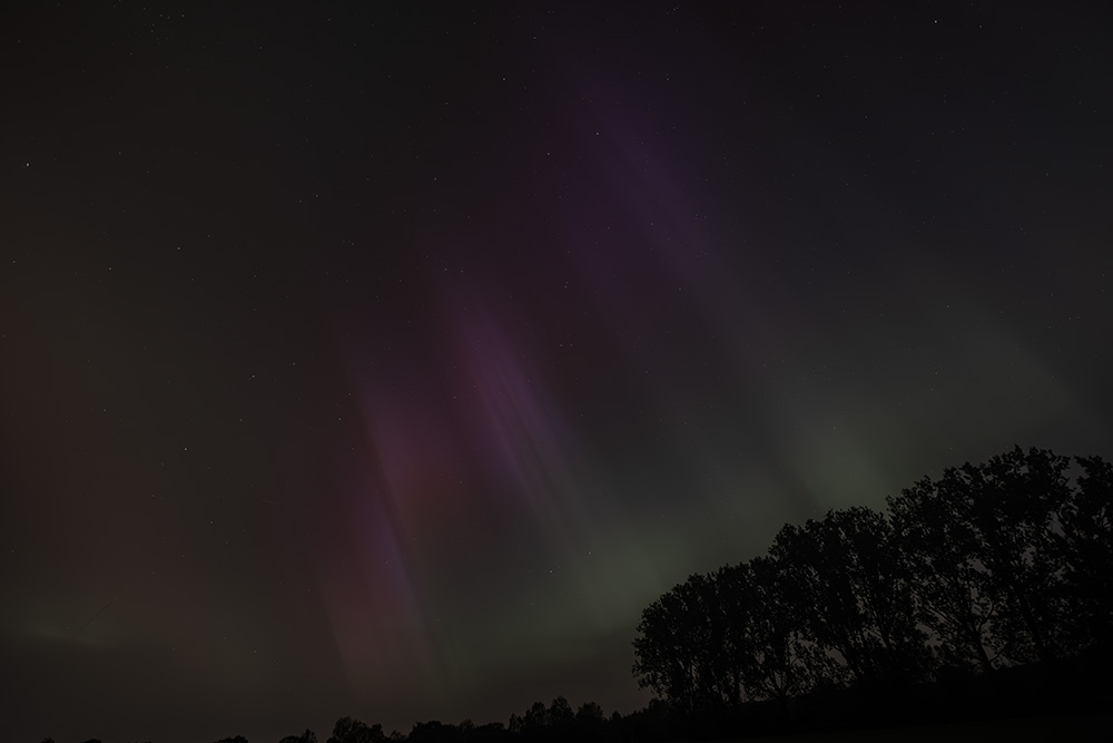 Höhenabstufung von grünen und roten Polarlicht am Abend des 12.08.2024.