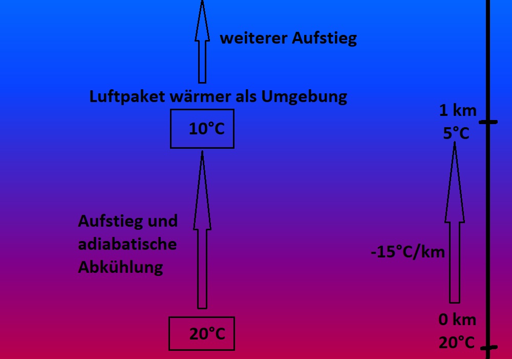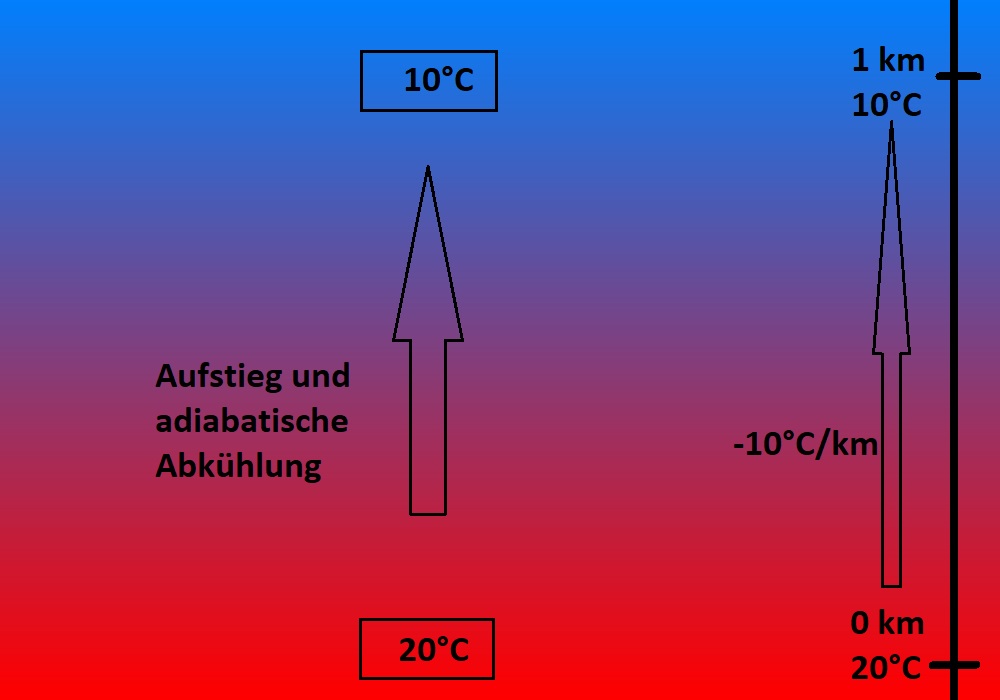 Das Wort "adiabatisch" kommt aus dem Griechischen und setzt sich aus "a" zu deutsch "nicht" und "diabatisch" zu deutsch "hindurchgehen". Doch was geht nicht hindurch? Im Allgemeinen bezeichnet adiabatisch, dass Wärme mit der Umgebung nicht ausgetauscht wird. Es wird also weder Wärme aus der Umgebung genommen, noch Wärme an die Umgebung abgegeben. In der Meteorologie wendet man den adiabatischen Prozess auf auf- und absteigende Luftpakete an. Die Luftpakete selbst sind isoliert und somit von der Umgebung getrennt, sodass kein Wärmeaustausch stattfindet.
