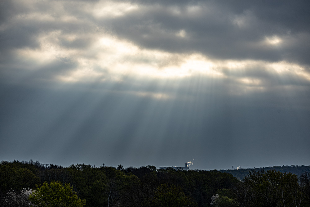 Heute dann tatsächlich in der ersten Tageshälfte bedeckt durch tiefen Stratocumulus, welcher Züge zu Stratus zeigte. Die Sonne kam ab und an mal durch, sodass es tolle Strahlen gab (Bild). Ab