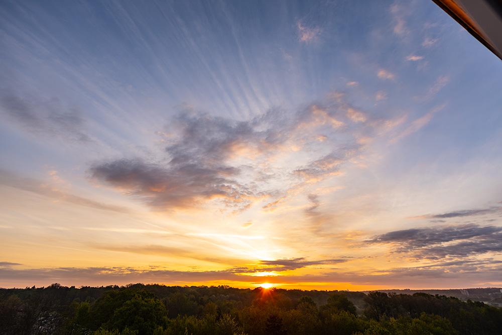 Der Tag begann noch sehr freundlich mit viel Sonne, dazu ein schöner Sonnenaufgang (Bild). Dazu wurde es auch warm. Abends dann deutliche Windauffrischung und deutliche Abkühlung bei zunehmender