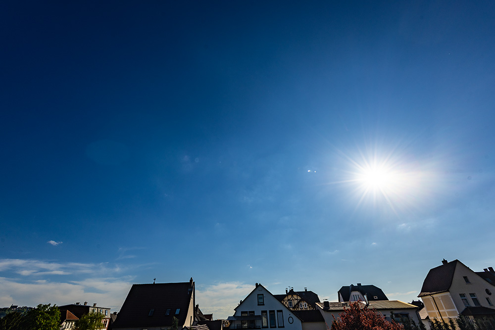 Auch heute wieder wie zuletzt wolkenlos (Bild). Außerdem war es heute warm. |