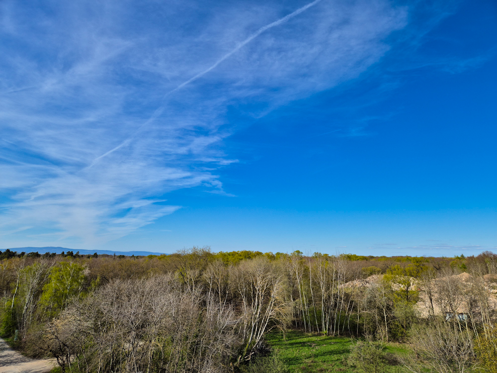 Morgens etwas Cirrus, an welchem es eine obere Lichtsäule gab (Bild 1). Ansonsten dann wolkenlos bei tiefblauem Himmel (Bild 2). Am Morgen noch recht frisch, doch tagsüber wurde es dann warm,