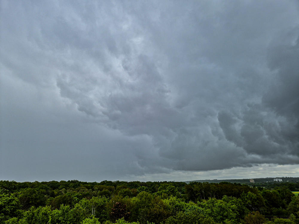 Heute ganztags bedeckt, am Nachmittag teils auch konvektiv durchsetzt (Bild). Es fiel immer mal wieder Regen, am häufigsten am Abend. Es war dazu relativ kühl, die Sonne kam so gut wie gar nicht
