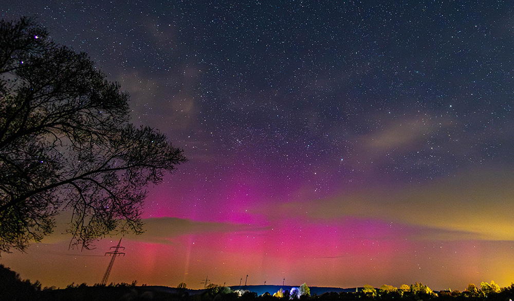 Tief "Eduard" wandert heute zur Ostsee und sorgt im Osten Deutschlands noch für Regen. Ansonsten hat sich Zwischenhocheinfluss durchgesetzt. Die Temperaturen steigen dabei langsam wieder an. Morgen folgt dann das nächste Tief "Fritz", welches heute über der Biskaya zu verorten ist. Bis zum Mittag blieb es weiterhin bedeckt durch Stratus und Stratocumulus. Anschließend wandelte sich die Bewölkung in Cumulus um und löste sich zunehmend auf. Dann zog nur noch etwas Cirrus und Cirrostratus durch und dies bedeutete natürlich Halos. Besonders auffällig waren die teils hellen Nebensonnen (Bild 1). Am Abend klarte es langsam auf, spätabends dann überraschend deutlich visuelles Polarlicht (Bild 2). Die Temperatur stieg von morgendlichen 7,1°C auf 16,6°C an, womit es deutlich wärmer war als gestern. |