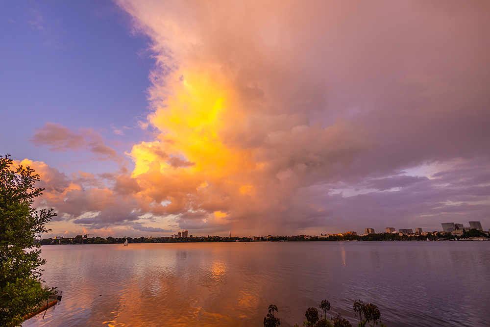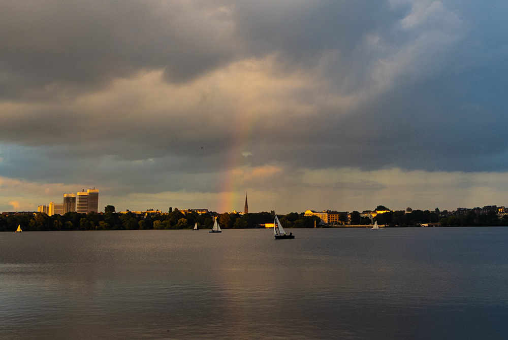 "Ex-Erin" füllt sich auf und wird allmählich durch das neue Tief "Ulrich" knapp westlich von Irland abgelöst. Ein schwacher Randtrog sorgt heute teilweise für einzelne Schauer, doch so langsam schiebt sich ein flacher Keil von Westen herein, welcher für Absinken und Wetterberuhigung sorgt. In der Nacht war es meist wolkig, es gab sogar mal ein paar Tropfen Regen. Ansonsten sehr freundlich heute mit einem Wechsel aus Sonne und Cumulus (Bild 1), dabei blieb es trocken. Die Temperatur stieg von morgendlichen 14,6°C auf angenehm warme 23,9°C an. Auf dem Weg nach Hamburg konnte dann bei Göttingen noch ein abendlicher Schauer erwischt werden, wo es zum einen einen Regenbogen (Bild 2) und zum anderen ein Abendrot (Bild 3) gab, ein durchaus toller Anblick. |