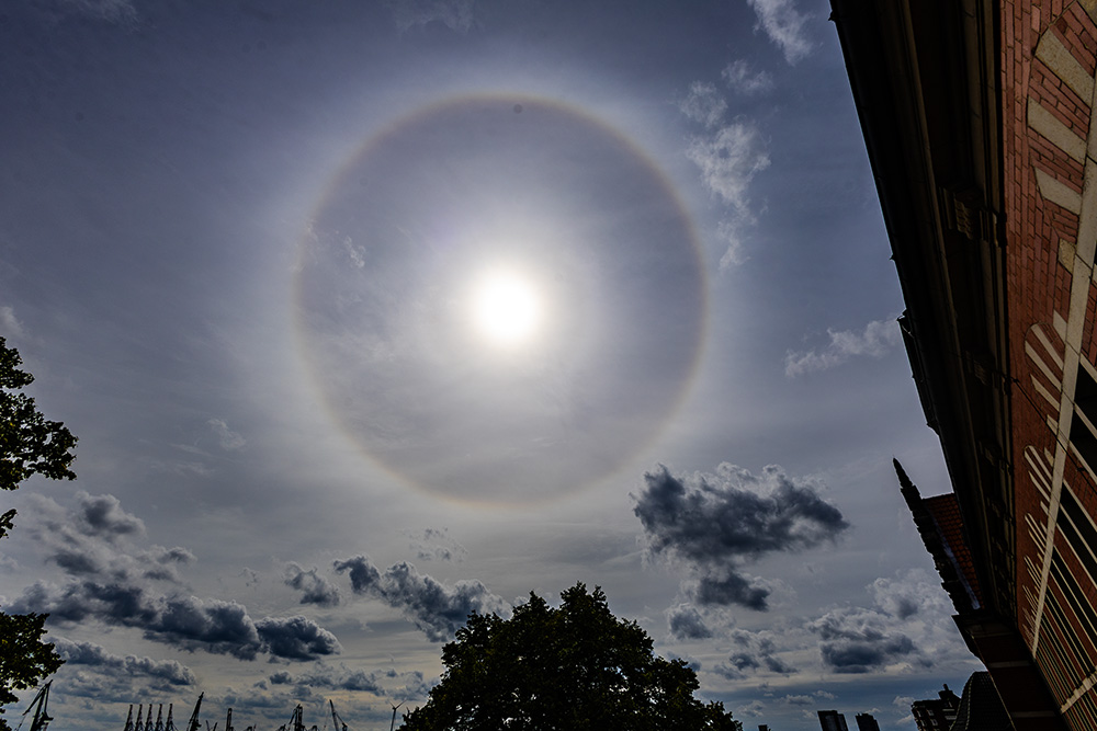 "Ex-Erin" drückt Hoch "Mareike" nach Südosteuropa ab. Dabei dreht die Strömung mehr auf südwestliche Richtungen und es kann eine subtropische Luftmasse einfließen. Heute wieder meist sonnig, ab mittags zog dann vermehrt Cirrus und Cirrostratus auf, an welchen es Halos gab (Bild). Am Abend zog dann sogar mal Altostratus hinweg, ehe sich die Bewölkung wieder ausdünnte. Die Temperatur stieg nach morgendlichen 7,4°C kräftig an und erreichte einen Höchstwert von 29,6°C, womit nur kanpp ein Hitzetag verfehlt wurde. Am Abend blieb es dann lange warm in der eingeflossenen Warmluft. |