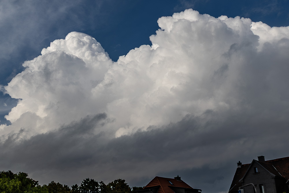 Zu Beginn noch häufig stark bewölkt durch Stratus. Dieser lockerte dann ab dem Vormittag auf und ging in Cumulus über, der im Verlauf bis zum Cumulonimbus heranwuchs