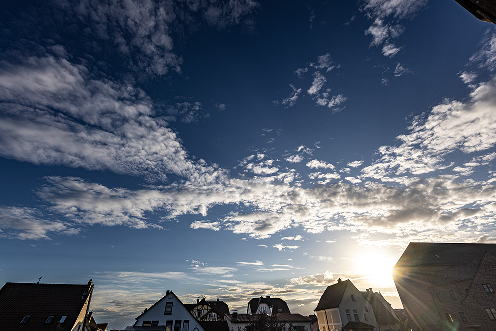 Und wieder häufig bewölkt, von eitel Sonnenschein unter Hochdruckeinfluss keine Spur, auch wenn die Sonne durch den vorhandenen Altocumulus schien (Bild). Es war weiterhin