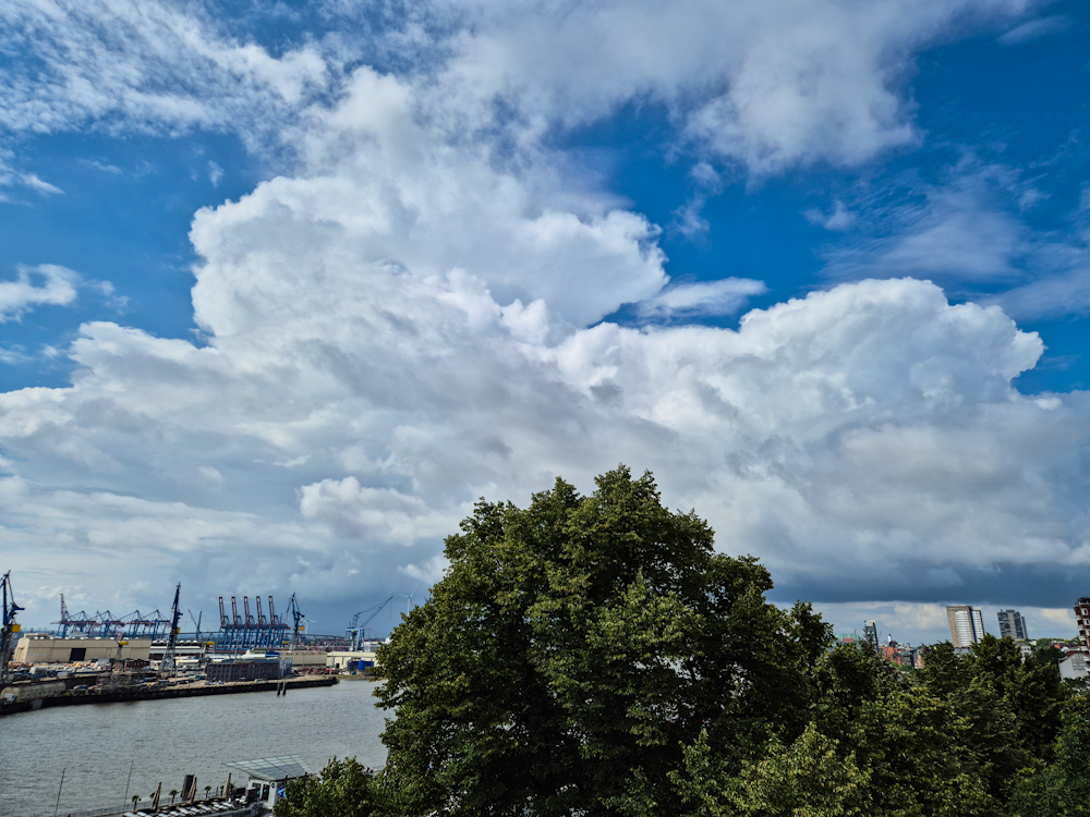 In der Nacht Abzug des Regens von gestern, aber erst am Vormittag lockerte es verstärkt auf. Dann war es sogar seit langem mal wieder sehr schön (Bild 1) und es wurde warm.