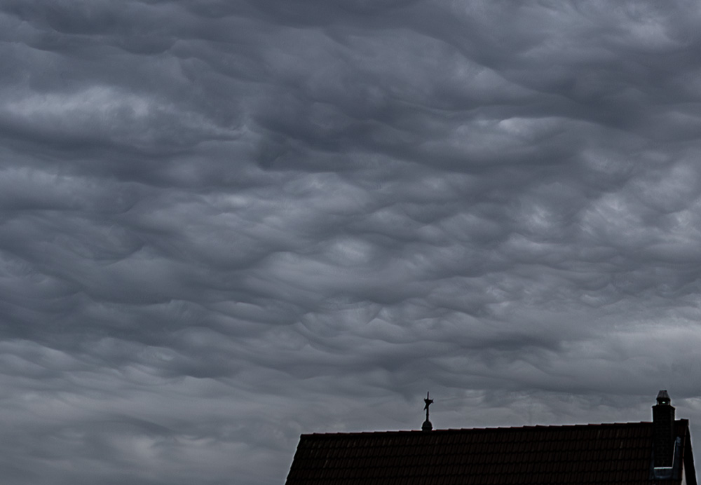 Allmählicher Übergang der Großwetterlage mehr zu Wz. Hoch "Friedrich" verlagert sich etwas südwärts und macht Platz für die eher wenig wetteraktive Kaltfront von Tief "Anka" nordöstlich der Britischen Inseln. Der Druckgradient verschärft sich dabei besonders in der Nordwesthälfte Deutschlands wieder etwas. In der Nacht greift dann die Warmfront des nächsten Tiefs "Bianca" über. Ähnliches Bild wie gestern, am Morgen fiel dieses Mal ein wenig Regen, insgesamt 0,5 mm. Dynamik war aber doch vorhanden, unter anderem am Vormittag in Stratocumulus die seltene Sonderform Asperatus (Bild 1). Am Mittag kam dann tatsächlich mal die Sonne durch ein paar Lücken hindurch (Bild 2), ehe es sich wieder mit der selben Wolkengattung zuzog. Die Temperatur sank morgens auf 4,9°C ab und überschritt am Abend mit maximal 10,4°C noch die 10°C-Marke, womit es sehr mild war. |