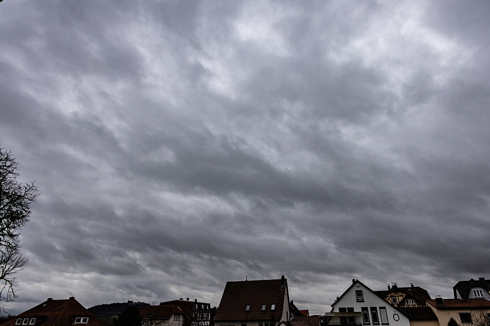 Unveränderte Großwetterlage. Heute folgt dann die nächste Front von Tief "Xaveria", welches aber westlich von Deutschland verweilt. Demnächst fließt wieder kühlere Luft ein, denn die atlantische Frontalzone wird erneut durch ein Hochdrucksystem über dem Ostatlantik blockiert und gestört. Nachts war es noch trocken und so blieb es auch bis zum Vormittag. Es war aber bereits bedeckt. Die Temperatur sank auf 2,6°C ab. Am Vormittag dann Regen, teils kräftig, insgesamt 6,8 mm. Dicker Nimbostratus überzog dabei den Himmel (Bild). Nachmittags dann Stratocumulus und teils Stratus, bereits Erhebungen lagen in den Wolken. Feuchte Luft, die Temperatur stieg auf maximal 6°C. |