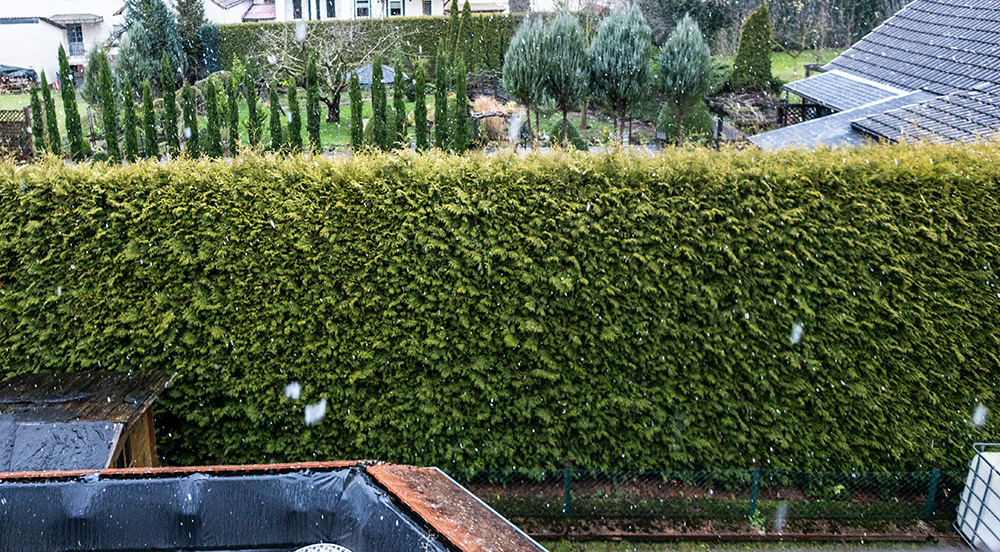Unveränderte Großwetterlage, Hoch "Günther" verlagert seinen Schwerpunkt mehr in Richtung Tschechien. Die trockenere Luftmasse aus dem Süden kommt nur wenig nordwärts voran. Da gibt es deutlich besseres Wetter zu Weihnachten (Regen und Sturm wäre tatsächlich im Moment deutlich lieber als das), trübes Einheitsgrau den ganzen Tag über (Bild). Immerhin gab es nochmals Sprühregen, welcher 0,2 mm brachte. Abends lag dann der Stratus als Nebel am Boden auf. Der Höchstwert von 4,5°C wurde bereits in der Nacht erreicht, dann wurde es kälter, um am Nachmittag nur kurz wieder ein klein wenig wärmer zu werden. Dann endgültiger Temperaturabfall, der Tiefstwert von 1,3°C wurde erst am späten Abend erreicht. |