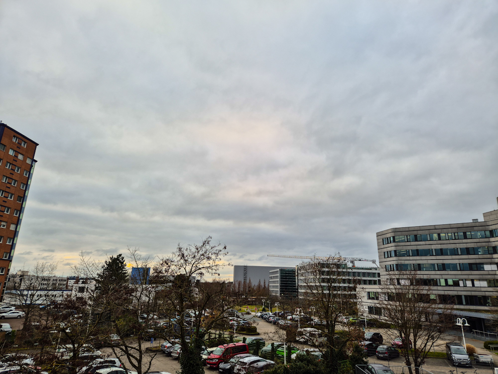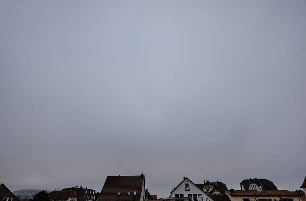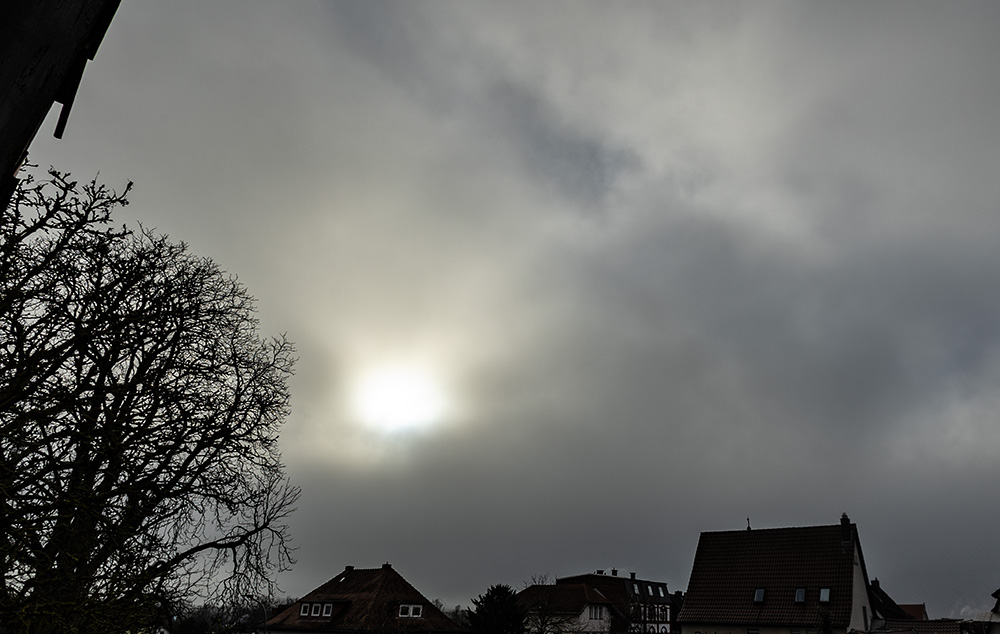 Der Zwischenhocheinfluss wird heute bereits wieder abgedrängt und das sich in Auflösung befindliche okkludierte Frontensystem von Tief "Caroline" zieht langsam über Deutschland. Das wettertechnisch deutlich aktivere Frontensystem von Tief "Diana" bei den Britischen Inseln wird dann ab dem Abend auf Deutschland übergreifen. Dazu wieder eine Verschärfung des Druckgradienten. Der kürzeste und somit auch dunkelste Tag des Jahres ist erreicht. Und natürlich war es heute bedeckt durch Stratocumulus (Bild). Somit also noch dunkler als eh schon. Bis zu Mittag war es dabei trocken. Erst dann gab es mal leichten Regen. Die Temperatur stieg stetig an von 2,1°C nachts auf maximal 6,5°C, was übrigens erst am späten Abend erreicht wurde. Am Abend setzte dann immer mal wieder schauerartiger Regen ein bei auffrischendem Westwind. Niederschlagssumme heute 3,3 mm. |