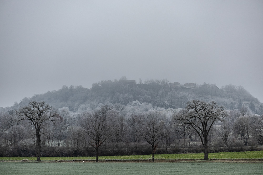 Hoch "Günther" bleibt über Mitteleuropa präsent, auch wenn es sich noch etwas abschwächt und die Großwetterlage auf Wa umstellt. Eine sehr schwache Kaltfront nähert sich von Nordwesten her und löst sich dann auf. Es reicht aber aus um die feuchte Grundschicht anzuheben, sodass selbst die Berge unter die Inversion tauchen. Damit sinken aber auch die Wahrscheinlichkeiten für eine Nebel-/Hochnebelauflösung. Der Nebel war zwar heute weg, dafür aber nun tief liegender Stratus. Kleine Erhebungen verschwanden darin (Bild 1). Aufgrund des vergangenen Nebels und frostigen Temperaturen ist die Landschaft mit einer Reifschicht überzogen (Bild 2). Die Temperatur machte wie auch zuletzt so gut wie gar keinen Tagesgang, stieg heute aber im Verlauf des Tages an. Der Tiefstwert somit in der Nacht mit -3,1°C. Der Höchstwert mit -0,8°C wurde am Abend erreicht. Da dieser unter der 0°C-Marke blieb, gab es somit heute Dauerfrost und damit definitionsgemäß ein Eistag. |