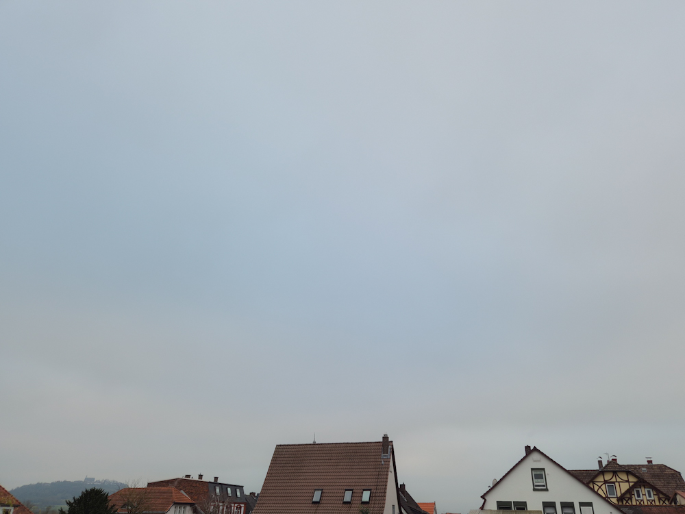 Und auch heute wieder zum großen Teil bedeckt. Es fiel auch mal etwas Regen, nicht sonderlich viel. Es war windig heute, fegte ab und an schon ganz ordentlich. Dazu mild (Bericht heute aus Langen). |