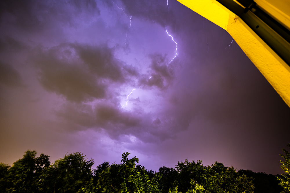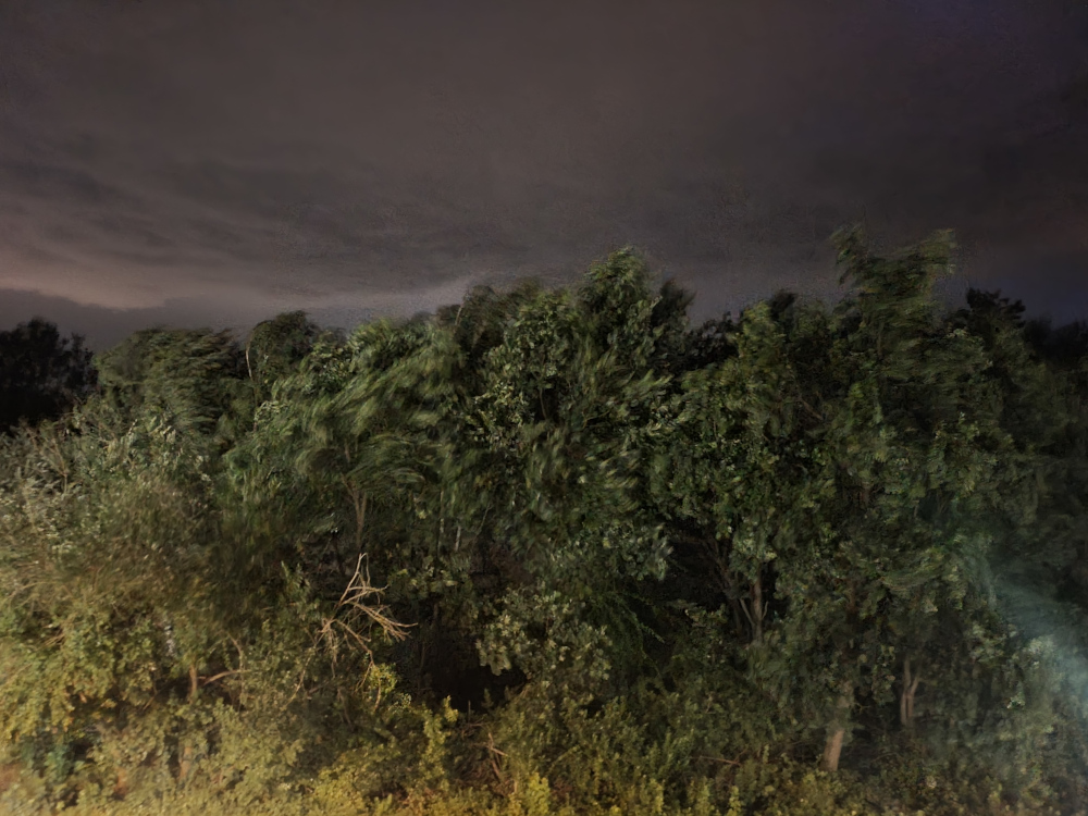 auffrischte mit Sturmböen. Die nahen Bäume wurden ordentlich durchgeschüttelt (Bild 3). Kurz vor Mitternacht dann bereits Wetterberuhigung. |