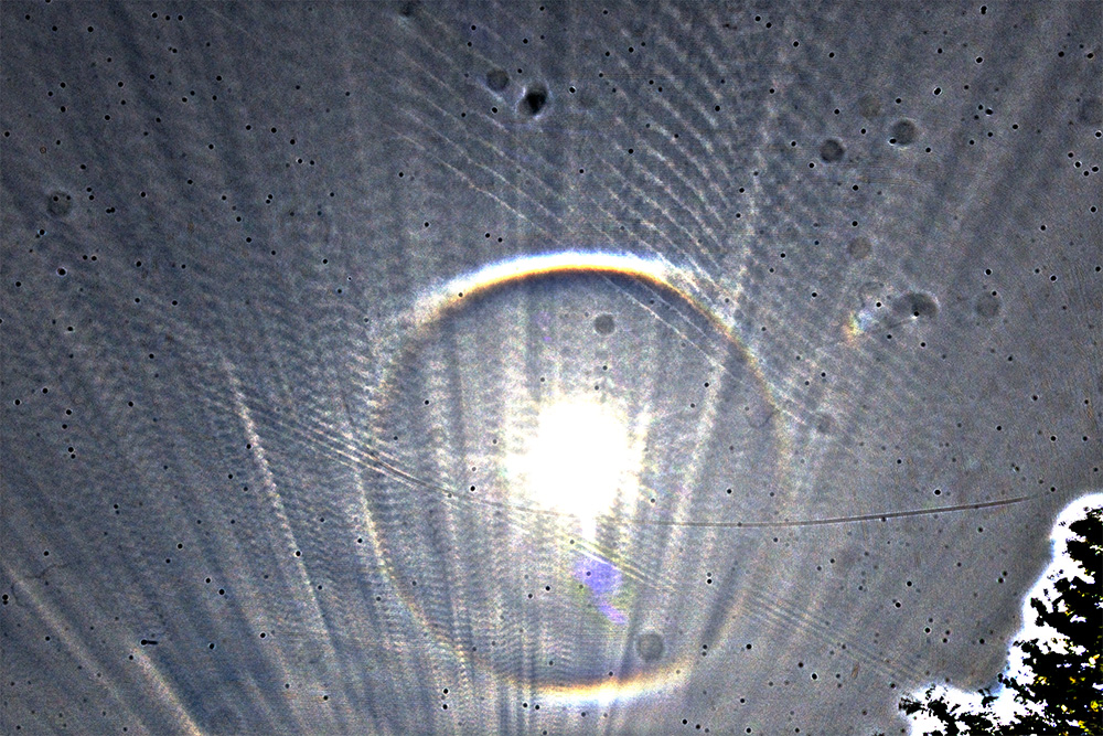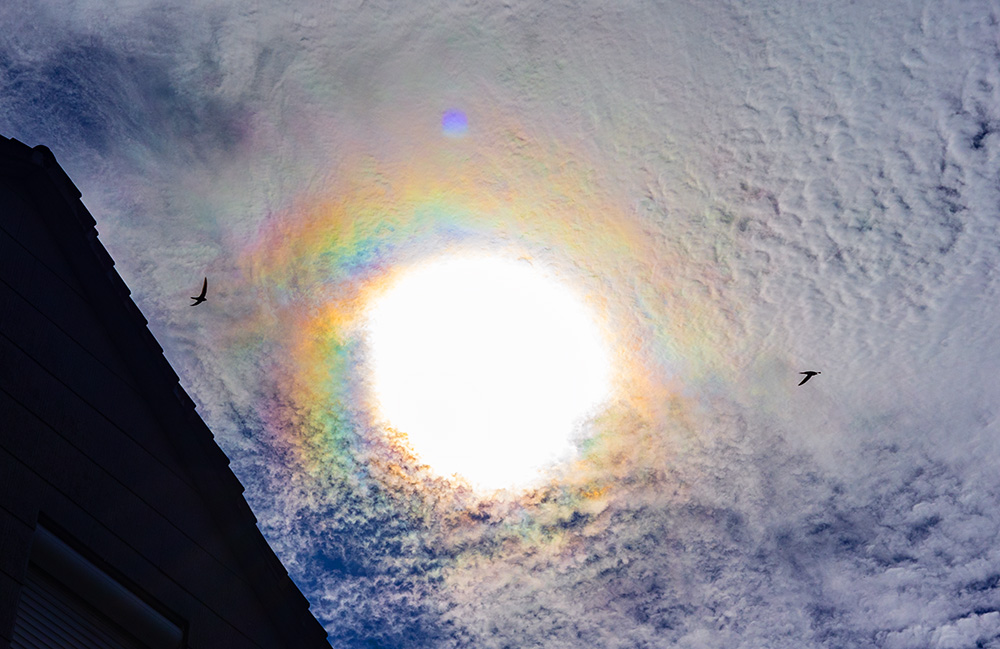 Tief "Johanna" verlagert sich in Richtung Skandinavien und drängt den Zwischenhocheinfluss ab. Die dazugehörige Kaltfront erreicht den Norden Deutschlands, wird aber am Vorankommen nach Süden durch das neue Tief "Kirsti" über Westeuropa aufgehalten. Dadurch bleibt es weiter südlich heute noch bei weiterhin Zwischenhocheinfluss. Die ersten Ausläufer der Front erreichten tatsächlich den Standort, sodass einmal am späten Vormittag und dann nochmals am späten Abend Regen fiel. Insgesamt kamen 4,3 mm herunter. Am Nachmittag und frühen Abend zeigte sich zeitweise die Sonne. Am Abend gab es sogar ein Halophänomen mit einem seltenen Lowitzbogen (Bild). Die Temperatur stieg von lauen 17,2°C auf warme 24,3°C an. |