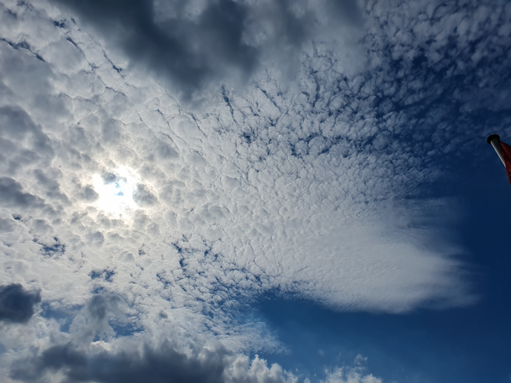Auch heute meist sehr freundlich, es zogen aber auch ein paar hohe bis mittelhohe Wolkenfelder durch, meist in Form von Altocumulus (Bild). Es war dazu angenehm warm. |