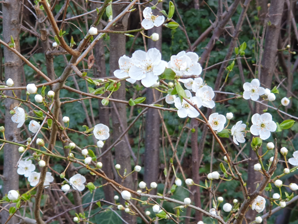 Unveränderte Wetterlage, tiefer Luftdruck wird auf Abstand gehalten, zumindest vorerst. Heute hat sich die trockene Luftmasse dann durchgesetzt, erkennbar daran, dass es oft wolkenlos war (Bild 1). Am Morgen durch die klare Nacht leichter Frost bei -0,5°C, tagsüber dann schnell wärmer bei maximal 14,2°C. Für März absolut typisch. Die Schlehe hat mittlerweile angefangen zu blühen (Bild 2), was sie normalerweise erst im April tut. Die Natur ist nach wie vor früh dran. |