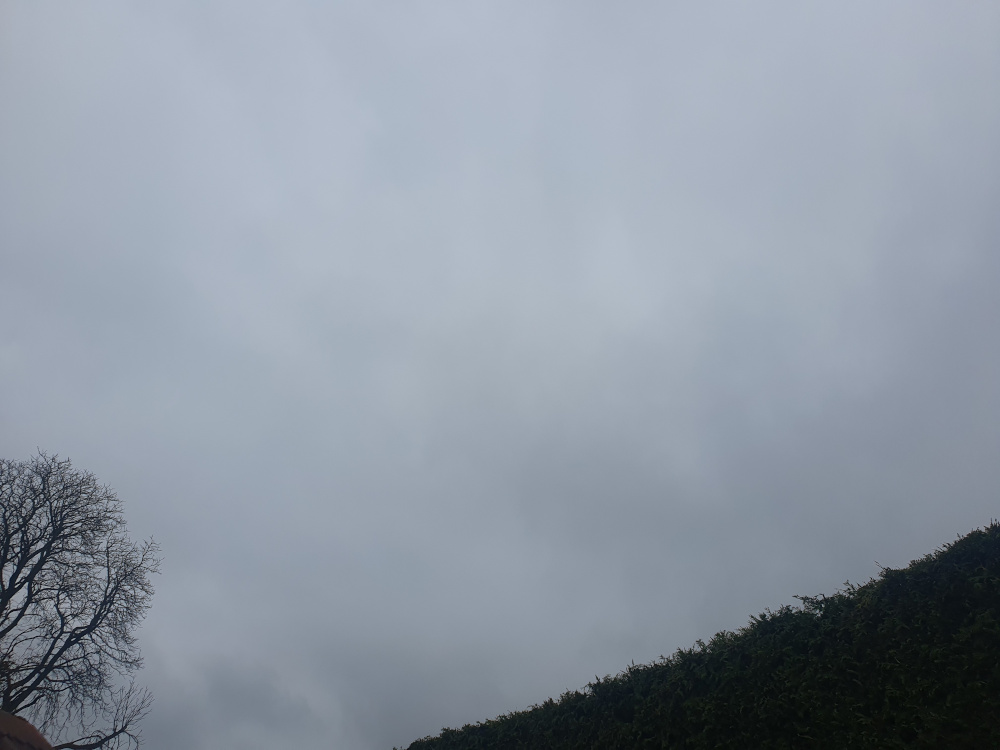 Heute leichter Zwischenhocheinfluss, doch das nächste Tief nähert sich bereits mit einer Warmfront Deutschland. Die Front wird morgen dann das Wetter bestimmen. Trotz Zwischenhocheinfluss oft stark bewölkt und kaum Sonne heute, aber auch kein Niederschlag. Somit wettertechnisch langweilig. Die Temperatur stieg von 3,7°C auf genau 10°C an. Abends kühlte es dank aufziehender Bewölkung nicht so stark ab. |