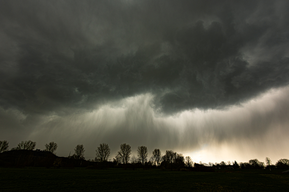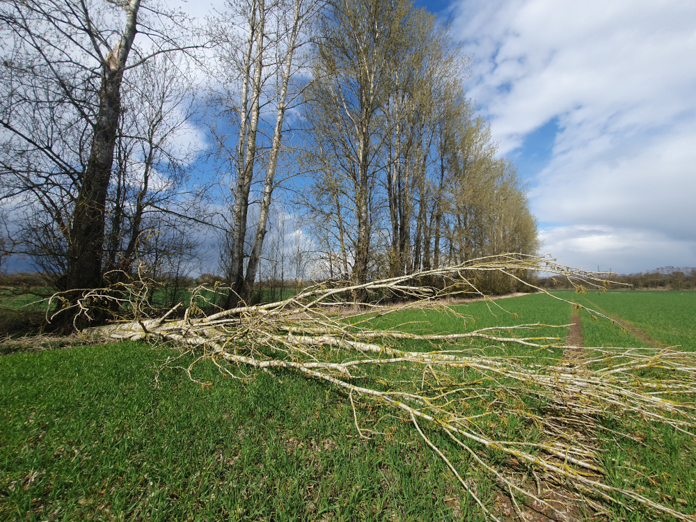 Ein Trog dehnt sich nach Süden aus und kühlere Luftmassen subpolaren Ursprungs erreichen Deutschland. In den Trog eingebettet sind die Tief "Kilia" und "Letizia", welche mit Höhenkaltluft des Troges für eine rege Schaueraktivität sorgen. Typisches "Aprilwetter" steht an. Heute das krasse Gegenteil von gestern: hochspannend! Am Morgen zog eine Kaltfront durch, hinter dieser floss dann die Höhenkaltluft ein und die hatte es in sich: immer wieder teils kräftige Schauer, die meiste Zeit Graupel, teils sogar Gewitter. Die Strukturen der Schauer ließen bereits die große Dynamik erahnen (Bild 1). Natürlich gab es auch einen Regenbogen, welcher sehr flach war (Bild 2). Nochmals zur Dynamik: der Wind war sehr ruppig und war in den Schauern stürmisch und riss riesige Äste, wenn nicht sogar die Hälfte von den Bäumen (Bild 3)! Frisch war es heute, die Temperatur stieg auf maximal 9,4°C an, in den Schauern waren es nur um die 5°C und am Abend sank die Temperatur auf 2,5°C ab. Niederschlagssumme heute 5,1 mm. |