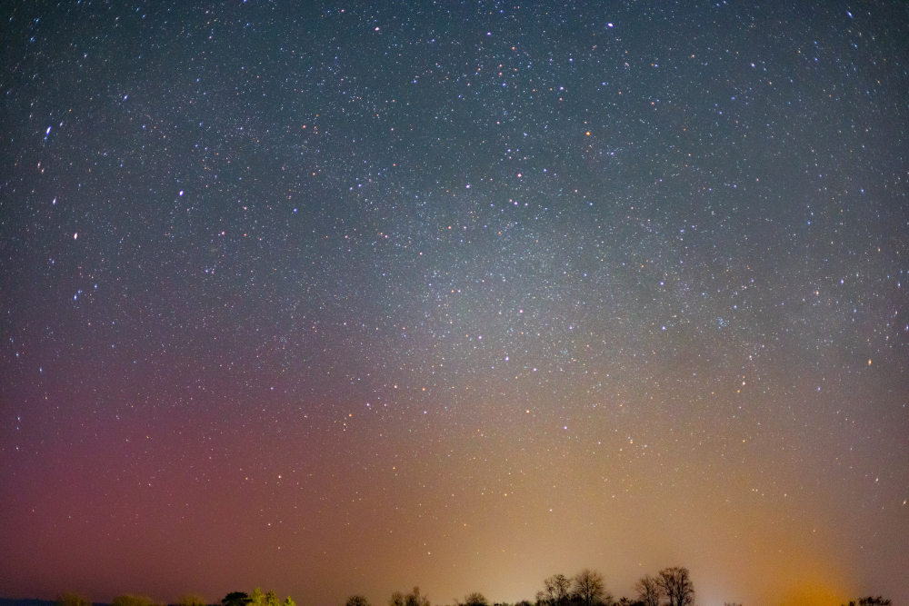 Noch immer unveränderte Wetterlage. Einzige Veränderung ist, dass Hoch "Jasper" durch Hoch "Klemens" abgelöst wird. Wieder eine klare Nacht, sogar mit sehr schwachen Polarlicht und Airglow (Bild). Es gab wieder leichten Frost mit genau -1°C. Tagsüber dann bei sonnigem Wetter schnell wärmer, heute maximal 17,6°C und damit fast schon warm. Abends kühlte es dagegen wieder schnell ab. |
