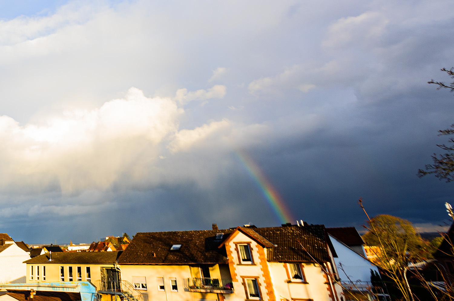 Auch heute setzt sich das Aprilwetter unter Höhenkaltluft fort. Von Westen her steigt aber der Luftdruck und ein Keil des Azorenhochs sorgt noch heute für eine deutliche Wetterberuhigung. Auch heute zahlreiche Schauer, aber bei weitem nicht so dynamisch wie gestern. Es blieb auch meist bei Regen. Nachmittags konnte bei zunehmenden sonnigen Abschnitten noch ein Regenbogen gesichtet werden (Bild). Abends dann endgültig Wetterberuhigung. Auch heute war es für Ende März frisch: die Temperatur stieg von 2,5°C auf maximal 9°C an. Abends kühlte es aber dagegen kaum ab. Niederschlagssumme: 2,5 mm. |