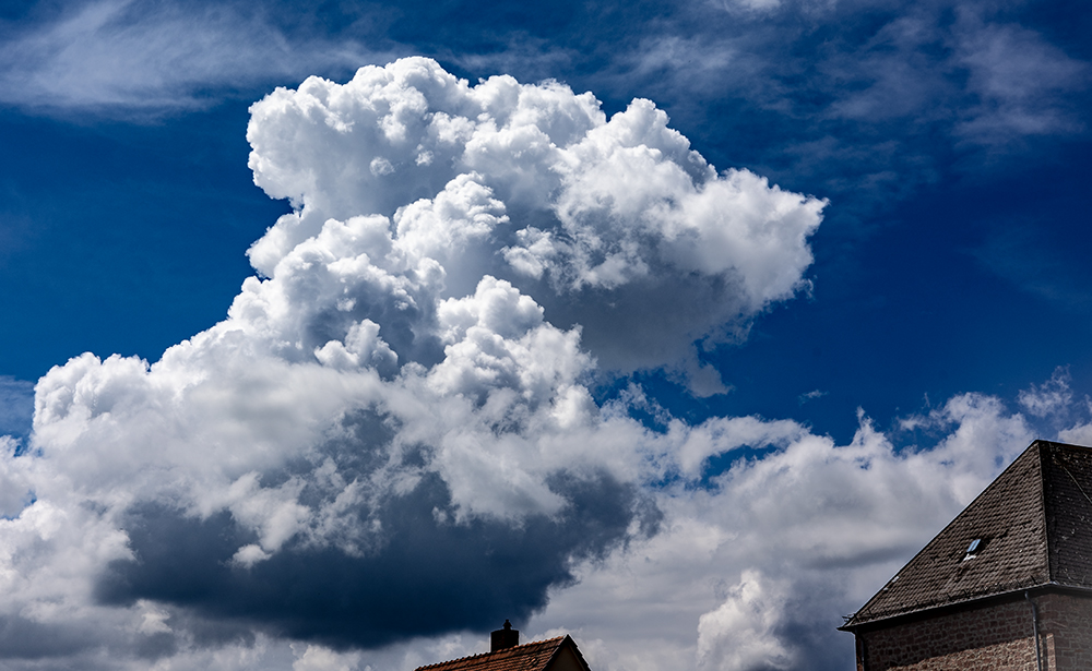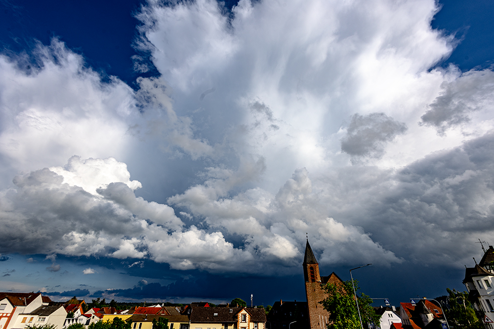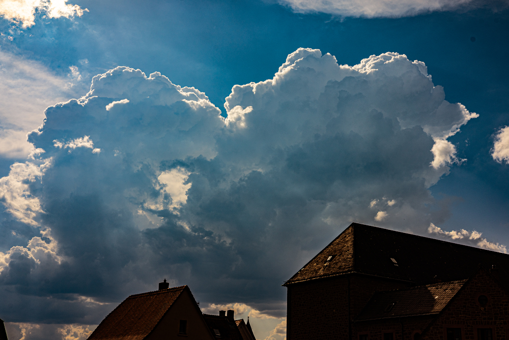 Tief "Flurina" übernimmt heute das Wettergeschehen und drängt den hohen Luftdruck nach Nordosten weg. Dabei wird die sehr warme bis heiße Luft feucht und instabil. Dazu greift von Südwesten eine Kaltfront auf Deutschland über. Teils unwetterartige Schauer und Gewitter sind die Folge. Mit knapp über 11 °C als Tiefstwert startete der Tag mit viel Sonne, die Temperatur stieg auf 29,8 °C an, womit ein weiterer Hitzetag nur knapp verfehlt wurde. Am Nachmittag dann schnelles Anwachsen von mächtigen Quellwolken (Bild 1). Es schien so, dass der Standort mal wieder in Sachen Niederschlag leer ausgeht, doch am Abend gab es dann doch ein Gewitter, mit teils kräftigen Regen (Bild 2), insgesamt 11 mm. Höhepunkt war ein 1 km entfernter Blitzeinschlag (im Video), gemessen durch den Blitzsensor. Anschließend beruhigte sich das Wetter wieder, es blieb den Abend lau. |
