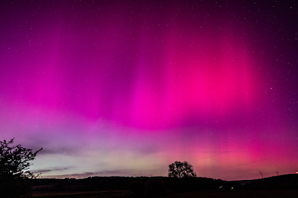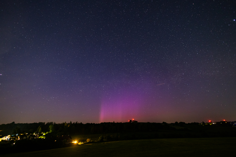 Hoch "Thomas" bleibt präsent und sorgt weiterhin für ruhiges und sonniges Frühsommerwetter. Absoluter Wahnsinn was sich in der Nacht ereignete: ein Polarlicht, was so noch nie erlebt wurde. Eine regelrechte Farbexplosion gab es (Bild 1), das Polarlicht trat sogar bis in den Südhimmel auf (Bild 2)! Mehr dazu im Polarlicht-Archiv und hier. Ansonsten wie zuletzt auch die selbe Abfolge beim Wetter: morgens und abends sonnig, nachmittags ein paar flache Cumuli. Abends dann wieder Polarlicht (Bild 3)! Aber bei Weitem nicht so wie die letzte Nacht. Auslöse war übringens ein Sonnensturm der höchsten Kategorie. Tmax heute sommerliche 26,8 °C. |