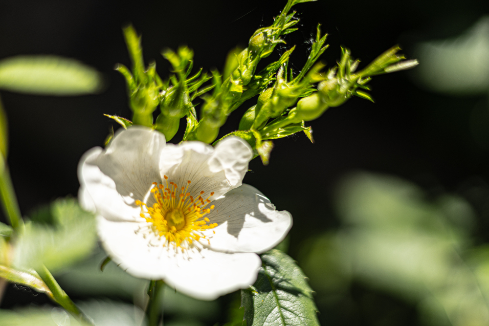 So langsam werden Tiefdrucksysteme doch wieder aus Westen aufdringlicher. So richtig stabile Hochdruckwetterlagen fehlen bisher dieses Jahr. Doch noch hält Hoch "Uwe" den Tiefdruckeinfluss fern. Das sommerliche und trockene Wetter setzt sich erst einmal fort. Und heute wurde dann wieder die 30 °C-Marke geknackt: Höchstwert 30,3 °C und somit ein weiterer Hitzetag im Mai. Ansonsten wieder das gewohnte Bild wie zuletzt: erst sonnig, dann Quellwolken, welche teils irisierten (Bild 1), abends dann wieder Auflösung der Quellwolken und erneut klar. Mittlerweile blüht die Feldrose im Garten (Bild 2). |