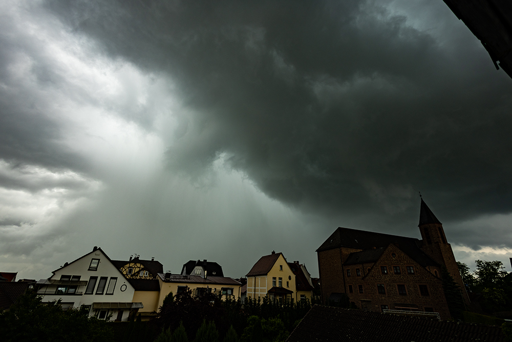 Tief "Nora" wird heute für das Wettergeschehen wichtig, denn das Frontensystem in Form einer Kaltfront überquert Deutschland. Morgen setzt sich dann mal ein Keil des Azorenhochs durch, ehe ein neues Tief das Wettergeschehen übernimmt. Der Tag startete durchaus ruhig und teils sogar sonnig. Doch ab dem Mittag bildeten sich wieder Quellwolken aus, welche am Nahcmittag auch mal einen Schauer hinterließen. Die Temperatur stieg von 13,4 °C auf warme 24,1 °C an. Am späten Abend traf dann die oben erwähnte Kaltfront ein, überraschend mit einen Gewitter. Daran kurzzeitig starker Regen, im Vorfeld eine sehr seltene Wolkenart: Asperitas (Bild), besonders an der V-Form erkennbar. Heutige Niederschlagsmenge: 4,5 mm. |