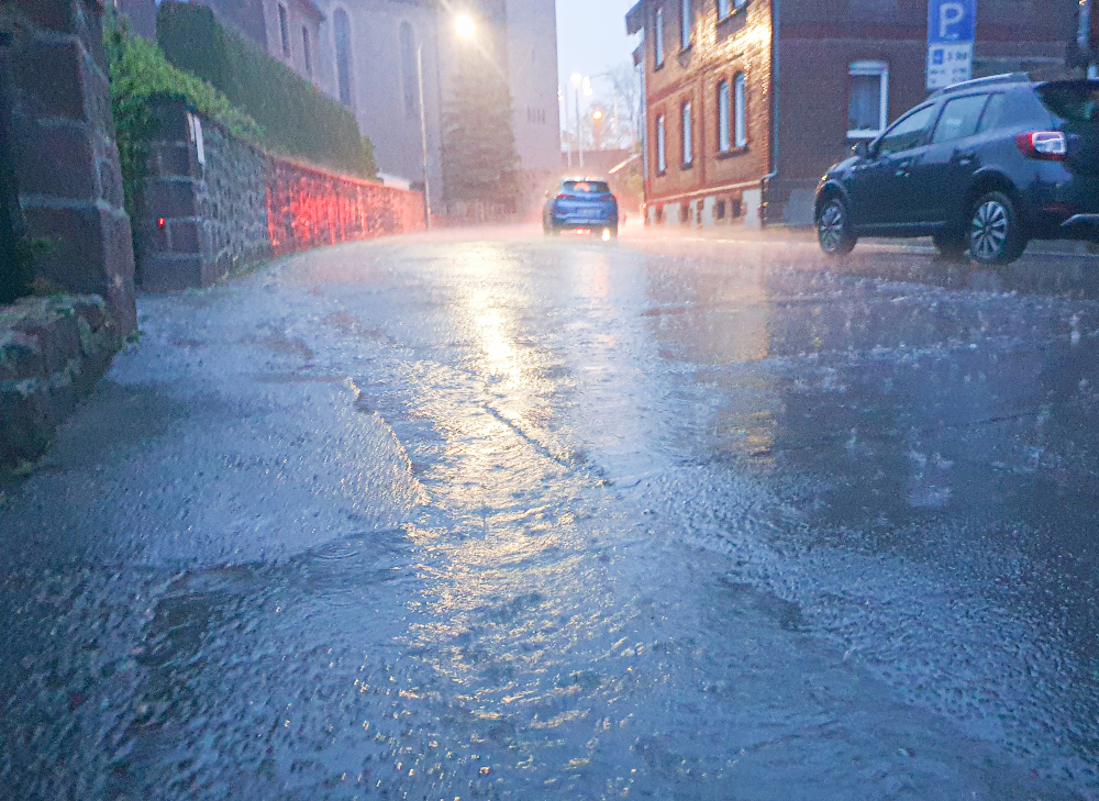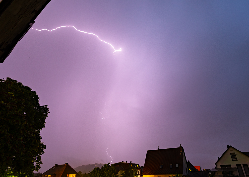 Und das nächste Tief, will irgendwie kein Ende nehmen, die Wetterlage ist eingefahren. Am Wochenende wird sogar ein Vb-Tief berechnet, auch die großen Regenmengen nehmen kein Ende. Wann kommen endlich mal beständige Hochs? Absoluter Wahnsinn, der Mai will es wohl in Sachen Niederschlag wirklich wissen, denn auch heute hohe Regenmengen, insgesamt 18,1 mm! Es steht jetzt fest, dass der Monat defintiv außergewöhnlich in Sachen Niederschlag ausfällt. Mal sehen, ob auch ein neuer Rekord ansteht. Aber jetzt zum heutigen Wetter: groß nach Regen sah es erst nicht aus, auch wenn es durchaus Schauer auf den Tag verteilt gab. Ab und zu kam aber auch die Sonne hervor. Die Temperatur stieg von morgendlichen 13,3 °C auf angenehm warme 20,6 °C an. Am Abend ging dann mit Eintreffen einer Front so richtig die Post ab, Platzregen und sogar wieder ein Gewitter (Bild), die Temperatur stürzte wieder auf den heutigen Tiefstwert ab. |