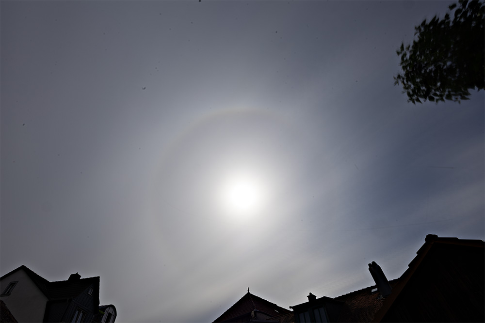 | Halophänomen am 04.07. | heller und farbiger ZZB am 04.07. | 22°-Ring am 06.07. | Fragmente von 22°-Ring und Umschriebenen Halo am 09.07. |