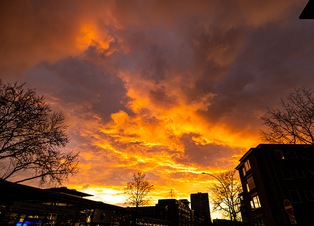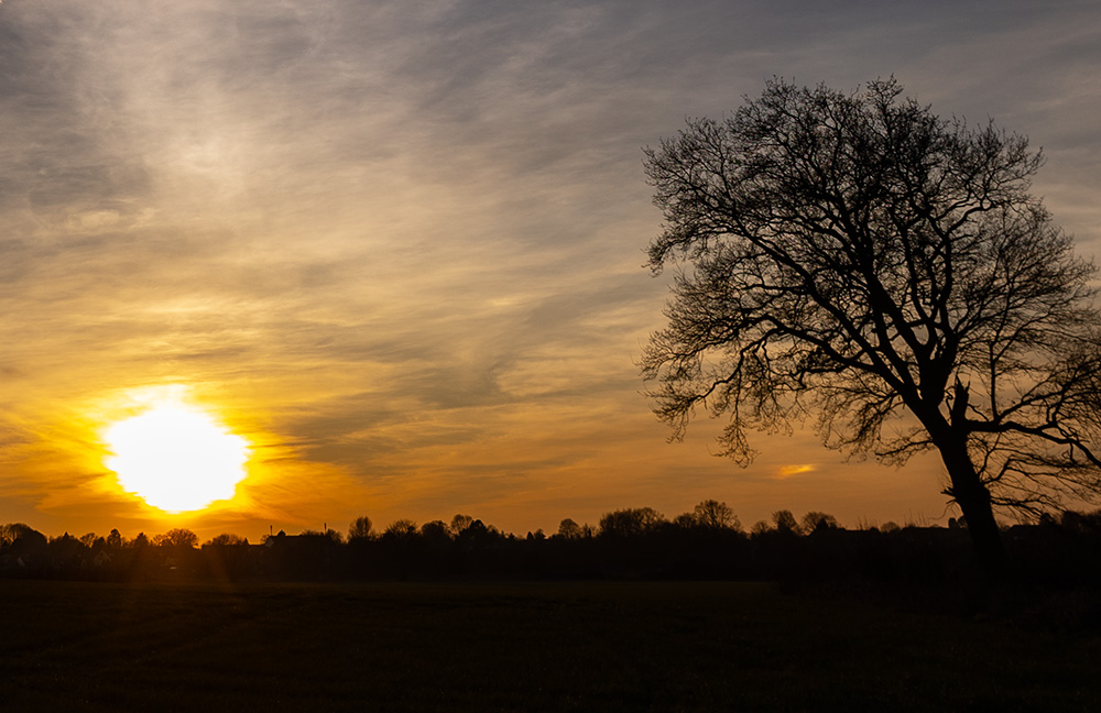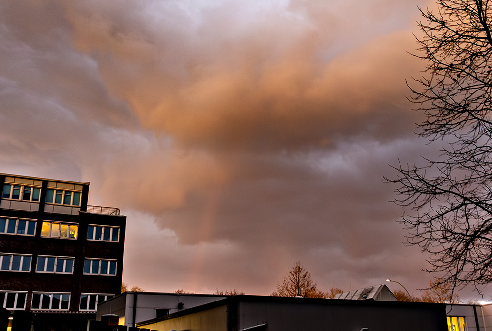 | Abendrot an Cirrostratus und Kondensstreifen 03.03. | Pollenkorona am 06.03. | Purpurlicht 06.03. abends mit Strahlen | Abendrot an tiefer Bewölkung 13.03. |