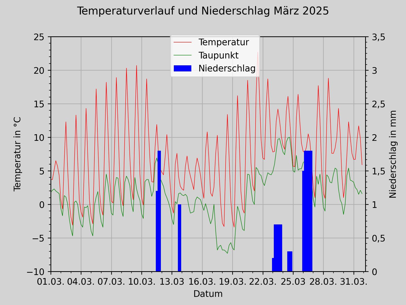 | Tmittel | Tnormal | Abweichung | Niederschlag | Niederschlagssoll | Abweichung |