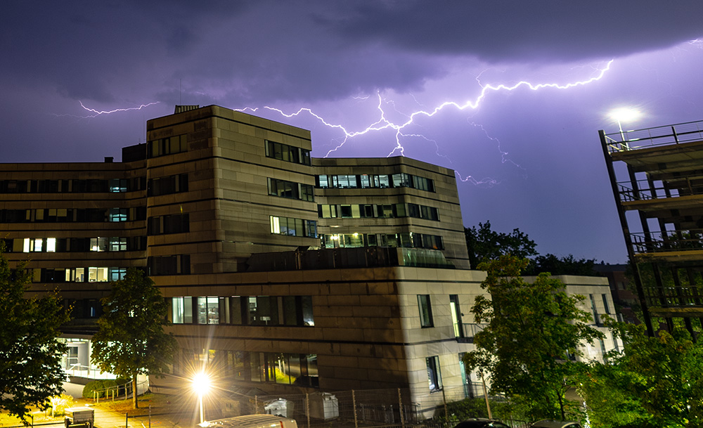 späten Abend dann tatsächlich ein Gewitter (Bild 2) mit Platzregen und Sturmböen. Wenigstens hier mal Action. |