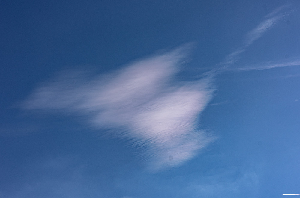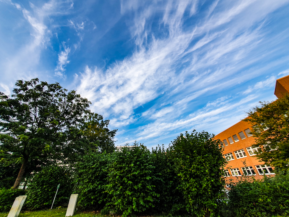 Immer noch Hochsommer, nach wie vor oft sonnig, wenngleich mal hohe Bewölkung durchzog. Am Nachmittag Durchzug von Cirrocumulus, an welchem es Irisieren gab (Bild). Abends wurde die Bewölkung
