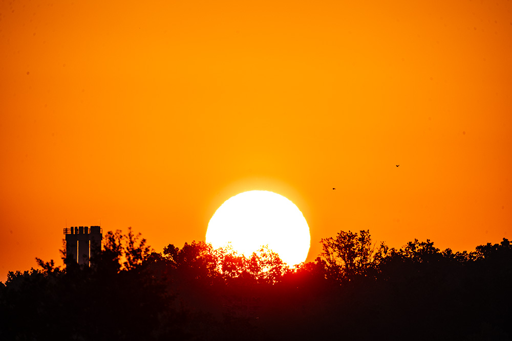 Die Nacht verlief klar, es kühlte kaum ab dank des immer noch lebhaften Ostwindes. Bis zum Nachmittag blieb es sonnig, am Morgen konnte der Sonnenaufgang wunderbar fotografiert werden (Bild).